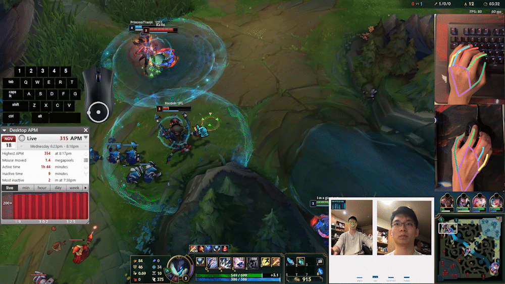 For the material experiment, I used League of Legends as the media to track player's emotion and finger movement. Then I selected three specific time points in the game, analyzed the data, and related these data to the player's performance. Finally, I developed four speculative sensing proposals for the game companies and players to utilize these technologies in gaming.